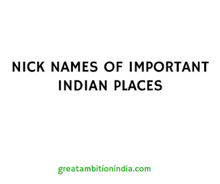 NICK NAMES OF IMPORTANT INDIAN PLACES | |